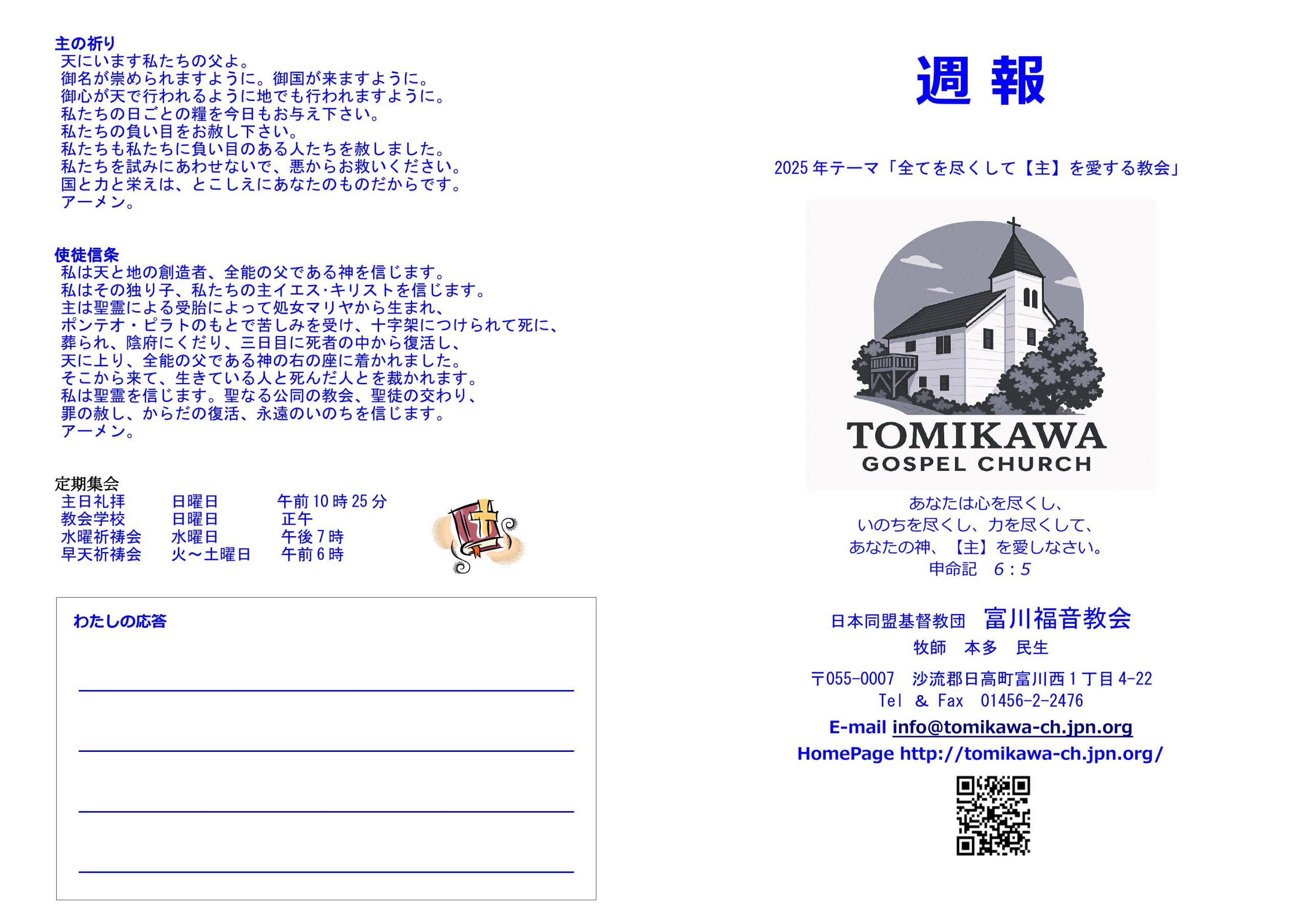 2025.10.26 週報 週報 2025.10.26 このコンテンツはアクセスが制限されています。 閲覧するには以下にパスワードを入力してください。 教会員の方でパスワードがわからない場合は牧師にお問い合わせください。