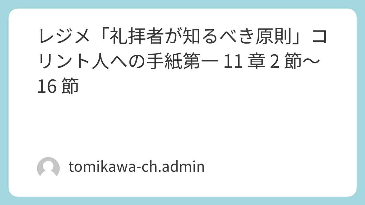 レジメ「礼拝者が知るべき原則」コリント人への手紙第一 11章2節~16節