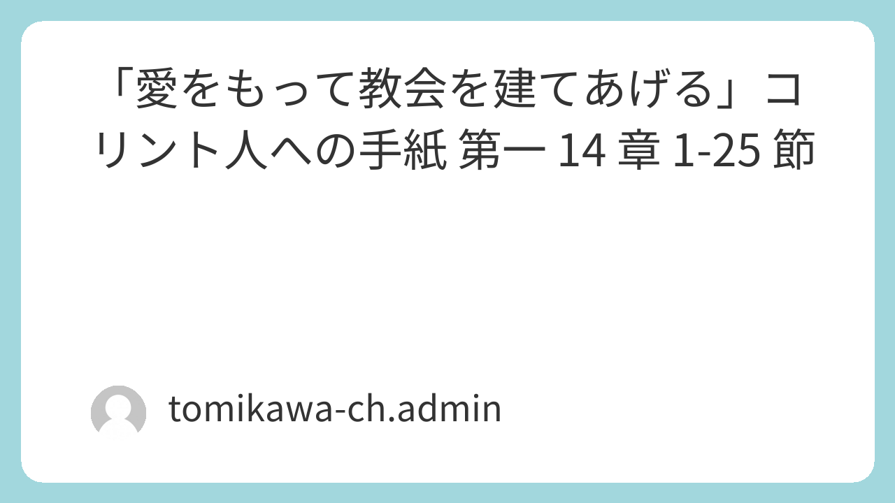 「愛をもって教会を建てあげる」コリント人への手紙 第一 14 章 1-25 節