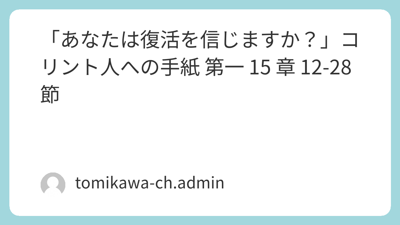 「あなたは復活を信じますか?」コリント人への手紙 第一 15 章 12-28 節