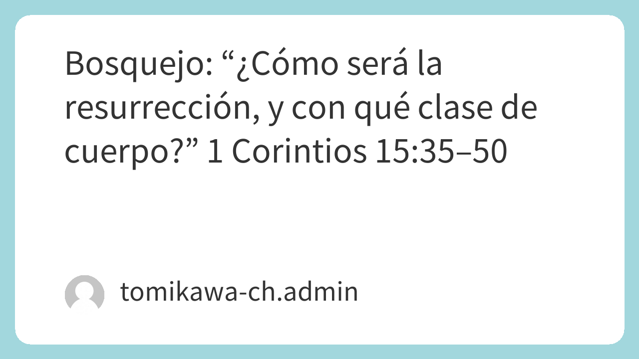 Bosquejo: “¿Cómo será la resurrección, y con qué clase de cuerpo?” 1 Corintios 15:35–50 レジメ 2026.02.15 Bosquejo_ “¿Cómo será la resurrección, y con qué clase de cuerpo_” 1 Corintios 15_35–50ダウンロード
