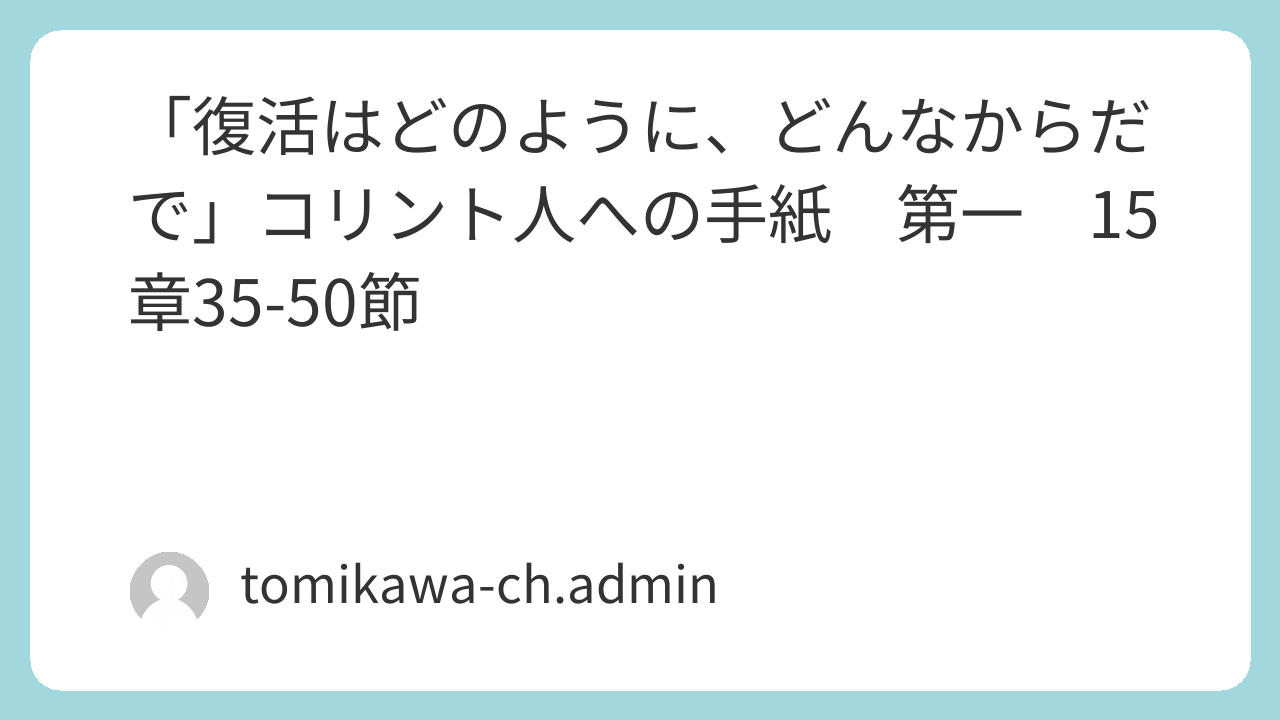 「復活はどのように、どんなからだで」コリント人への手紙 第一 15章35-50節 説教文 2026.02.15 「復活はどのように、どんなからだで」コリント人への手紙 第一 15章35-50節ダウンロード