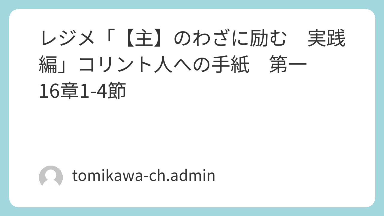 レジメ「【主】のわざに励む 実践編」コリント人への手紙 第一 16章1-4節
