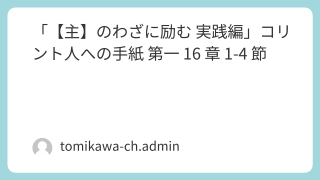 ホーム 「【主】のわざに励む 実践編」コリント人への手紙 第一 16 章 1-4 節 「【主】のわざに励む 実践編」コリント人への手紙 第一 16章1-4節ダウンロード 2026.03.08 ホーム礼拝・祈祷会説教文