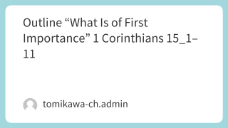 レジメ Outline “What Is of First Importance” 1 Corinthians 15_1–11 Outline “What Is of First Importance” 1 Corinthians 15_1–11ダウンロード 2026.01.25 ホームレジメ礼拝・祈祷会説教文