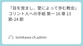 説教文 「目を覚まし、愛によって歩む教会」コリント人への手紙 第一 16 章 13 節-24 節 「目を覚まし、愛によって歩む教会」コリント人への手紙 第一16章13節-24節ダウンロード 2026.03.22 ホーム礼拝・祈祷会説教文